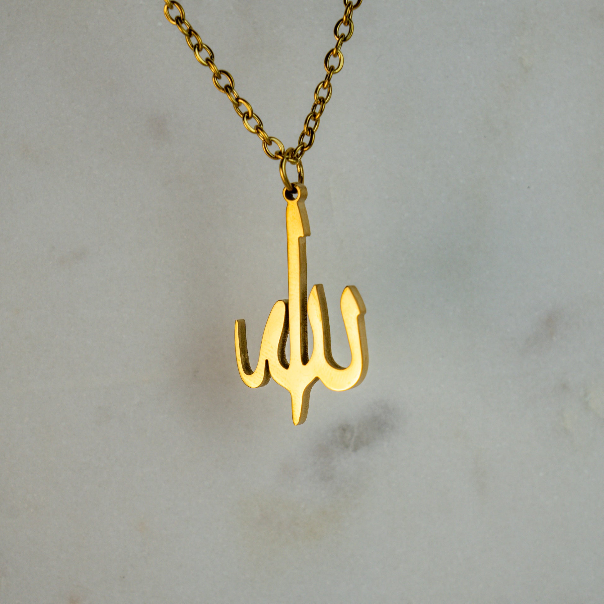 A bold design with deep meaning - this necklace features the name Allah in a unique Arabic calligraphy. A modern expression of unwavering faith, made to stand out with purpose.
