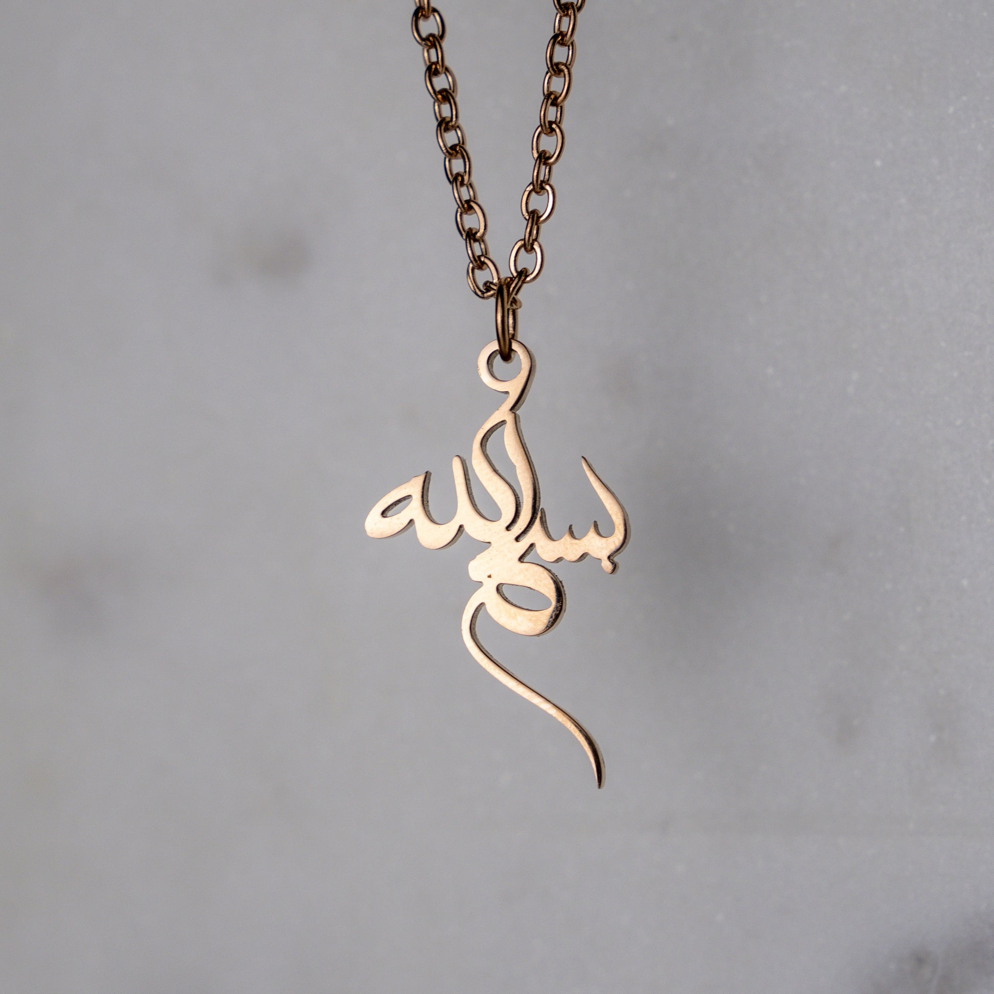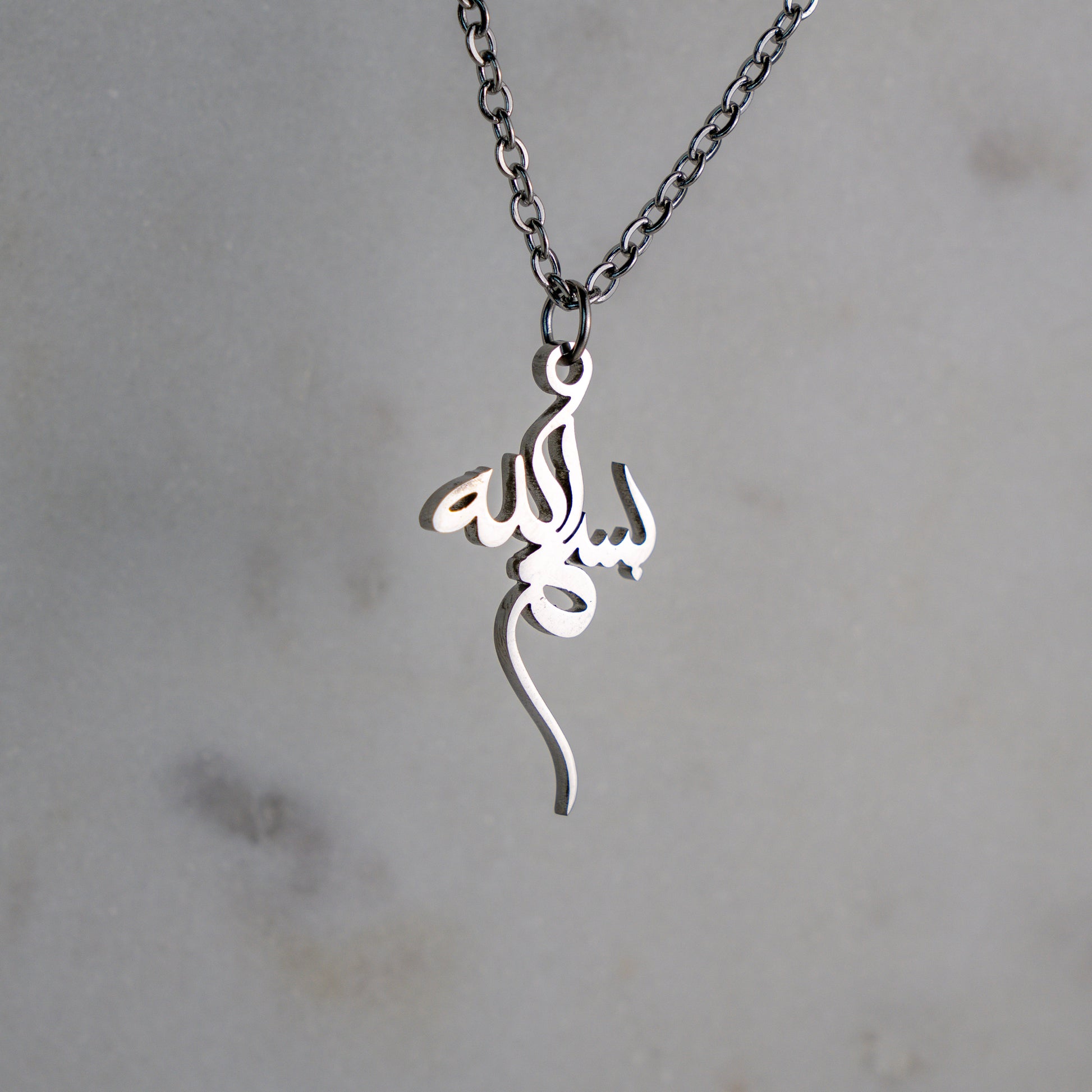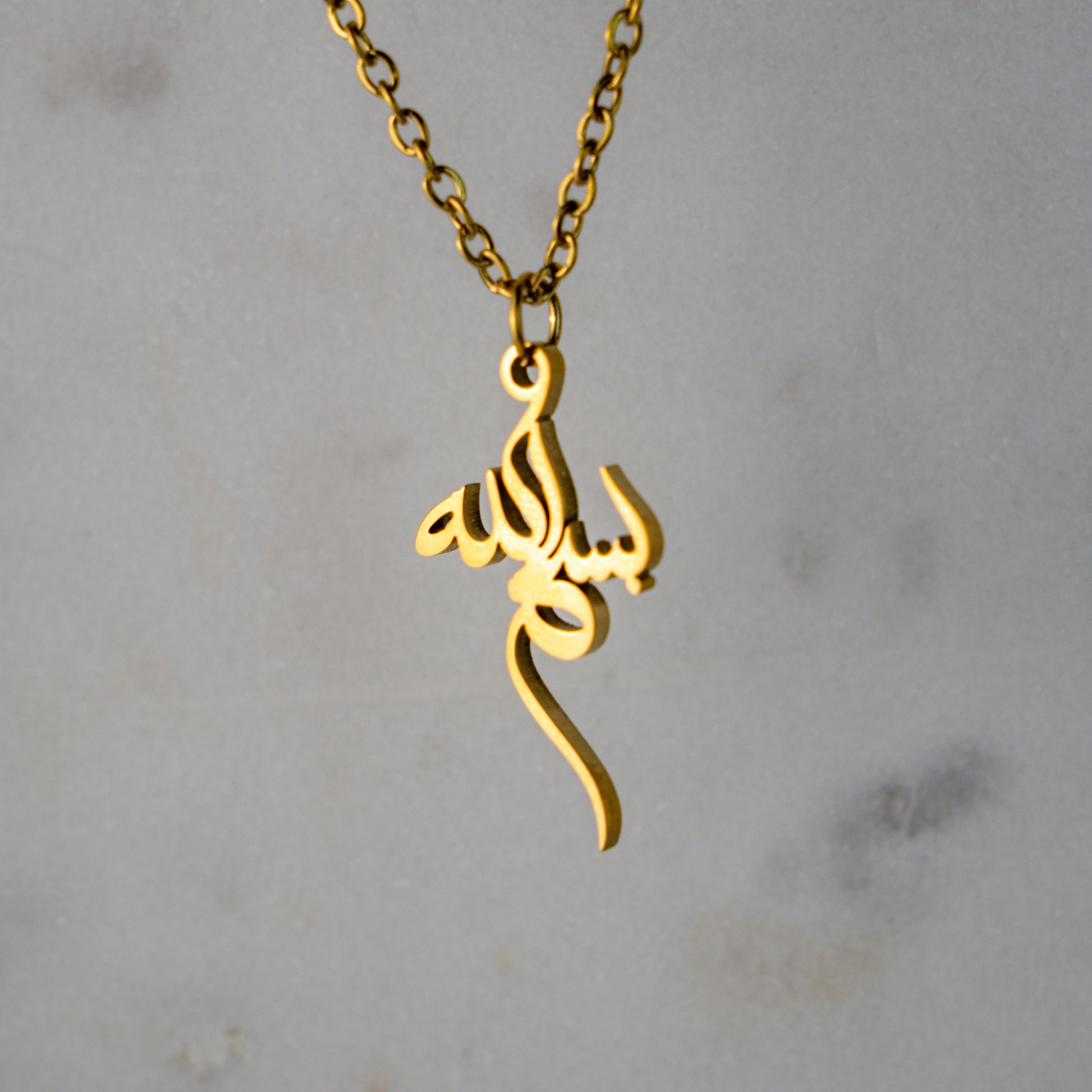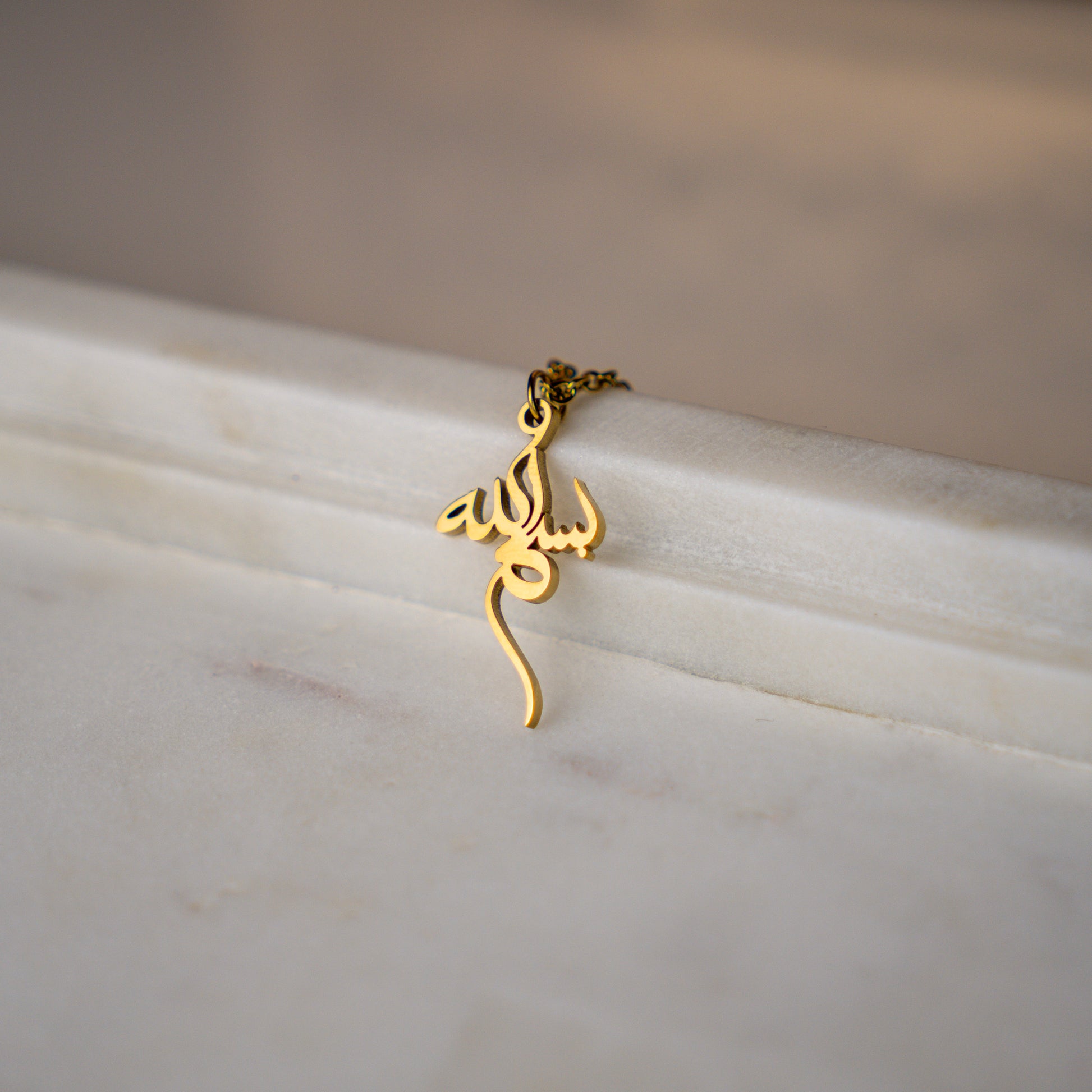 Start every moment with intention. This elegant pendant spells “Bismillah” - In the name of Allah in beautiful Arabic calligraphy, serving as a daily reminder of purpose, faith, and grace.